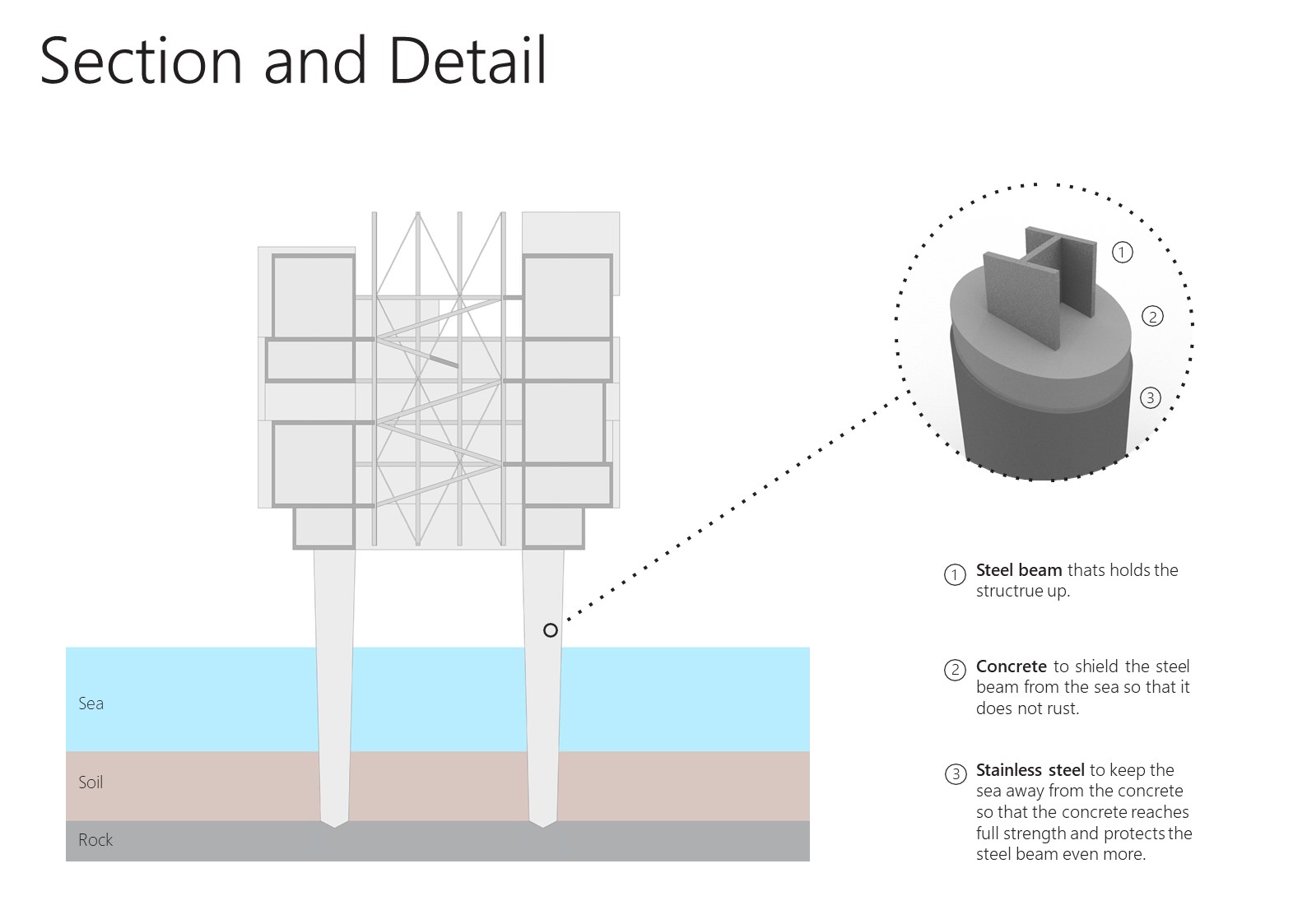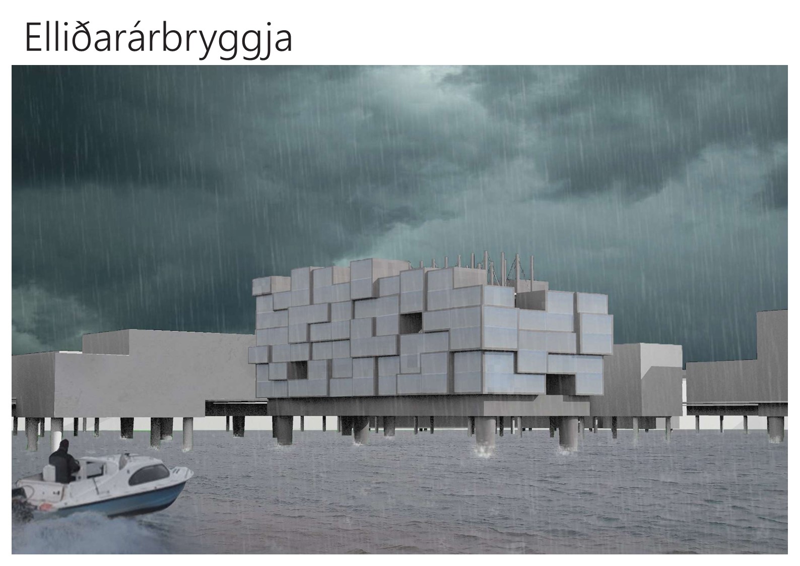 According to the framework plan for Höfði, 13 hectares of landfill are proposed, with estimate of 1840 inhabitants and 818 apartments. Material demand for the landfill is about 1.25 million cubic meters and will take about 4 years to complete. The landfill, however, will damage salmon stocks during the construction period, which can have a significant impact on their sustainability. Only two options have been discussed; landfill or no landfill. I believe landfill is not an appropriate decision. I believe that there is another option available that will not compromise the number of apartments in the area. My idea is to put the apartments on pillars out on sea which creates character and a great landmark for the area. This would be a great opportunity for Reykjavik to be connected to the sea. Putting the apartments on pillars out to sea is cost-effective and, roughly estimated, it would be cheaper.